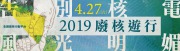 2019廢核遊行【台北】展覽/舞台表演/市集 ☢ 日期:2019.4.27 (六) ,13:00-17:30。 ☢ 地點:凱達格蘭大道 (靠台大醫院捷運站) ☢ 遊行路線:凱道→公園路→襄陽路→重慶南路→衡陽路→中華路→漢口街→館前路→忠孝西路→公園路→中山南路(路線圖) ☢ 遊行隊伍:請直接現場至基金會攤位處(面對舞台左側)與工作人員聯繫。