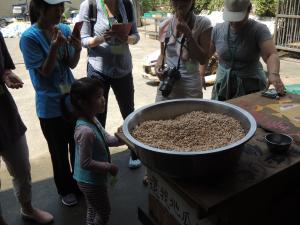 之後,聖方準備了用糙米的爆米香活動,大家平常常吃爆米香,但較少看到現作的。聖方除跟我們分享說爆米香的