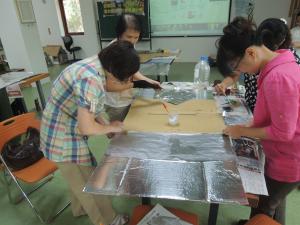 學員們跟著簡老師的指示,一步步做好自己的太陽能鍋。當大家把鍋子拿到太陽底下時,都有一種不可思議的感覺。心裡都想著:甚麼東西都沒有,這樣東西真的會熟嗎?由於當天風比較大,加上建築物有遮蔽掉部份的陽光,故我們約等了一個小時才去打開鍋子取出雞蛋。結果裡面的雞蛋都變成溫泉蛋了!味道十分好!