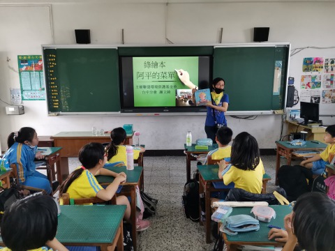 講師以綠繪本說故事方式將綠食育與綠能源的環境議題帶進中部地區國小學校,目前已執行完成3場次,分別為大里國小2場次及國安國小1場次,透過「阿平的菜單」內容傳達主人翁愛吃的糖果餅乾成份含有的食品添加物容易引起健康疑慮,進而連結學童日常生活飲食習慣的相聯性,使學童能加深對此議題的認識並產生學習動機,透過課程內容漸進式的培養學童觀察力,認識生活中常見的食品可能有的風險。