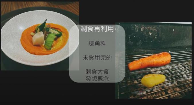 莎莎主廚和我們分享了許多在餐廳製備料理的過程中,可以將惜食理念融合進去的地方,包含了精準準備食材、運用保存食及發酵食、預備材料再變化、剩食再利用。