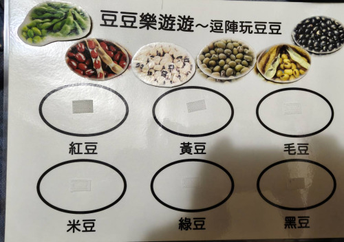 主婦聯盟基金會今年以「大豆飲食知多少」桌遊與親子們互動。現場依參加人選中的綠豆、紅豆、黑豆和黃豆區分4組,坐定位後每人會拿到一袋包含五種的混合豆子,請他們將它區分出來,同時順便可以認識各種豆子。