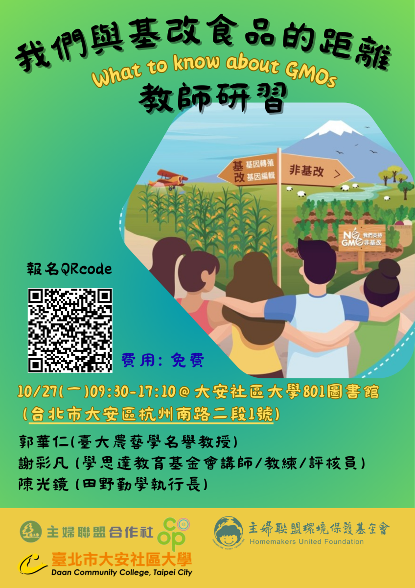10/27(一)《我們與基改食品的距離》教師研習~開放報名