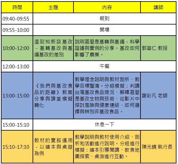 歡迎教師報名,一起從教學現場理解並探討基改議題!